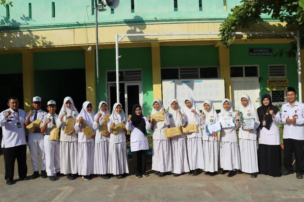 Pengharagaan diserahkan langsung oleh Kepala madrasah, Dra. Herlina Sulistiani, M.Pd. Usai menerima penghargaan seluruh siswa prestasi berfoto bersama. (Tya)