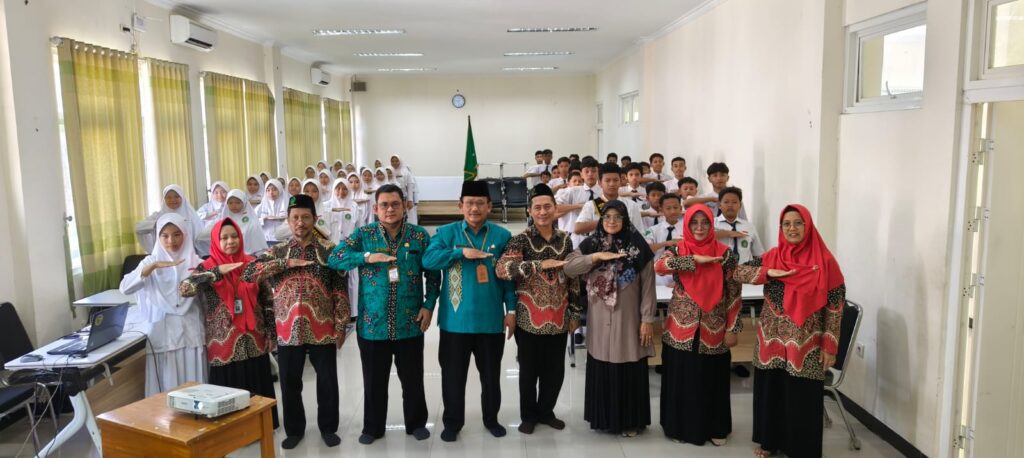 Dalam kesempatan ini Kepala madrasah menyampaikan pentingnya menanamkan penguatan moderasi beragama bagi pelajar. Apalagi dengan maraknya kasus radikalisme yang terjadi di tanah air. Salah satu upaya untuk mewujudkan generasi yang moderat adalah menanamkan prinsip-prinsip moderasi beragama dalam berkehidupan berbangsa dan bernegara.