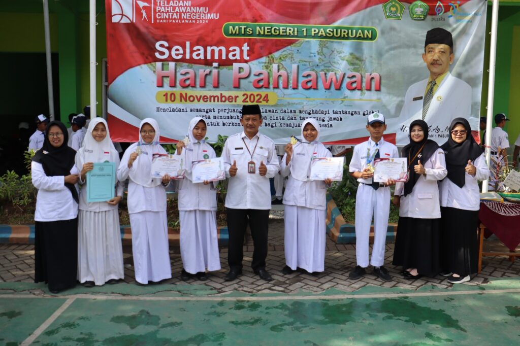 Pada kesempatan upacara bendera ini madrasah juga menyerahkan penghargaan kepada sejumlah siswa berprestasi diantaranya :