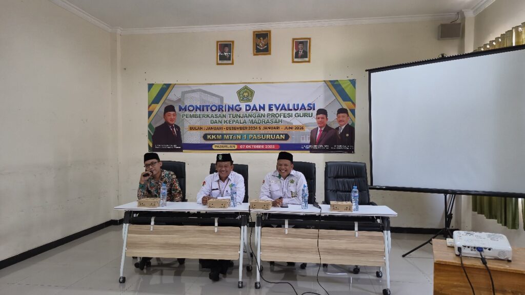 Pasuruan – Hari ini (07/10/2025) Kantor Kementerian Agama Kabupaten Pasuruan mengadakan monitoring dan evaluasi pemberkasan tunjangan profesi guru dan kepala madrasah Kelompok Kerja Madrasah (KKM) MTsn 1 Pasuruan di Ma’had Darul Muttaqin.