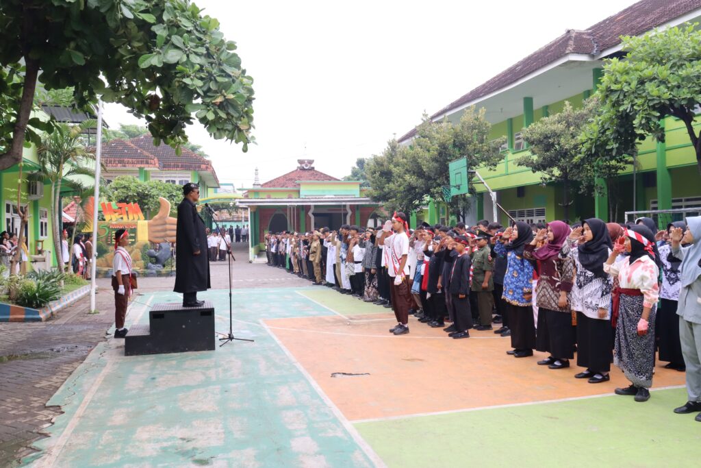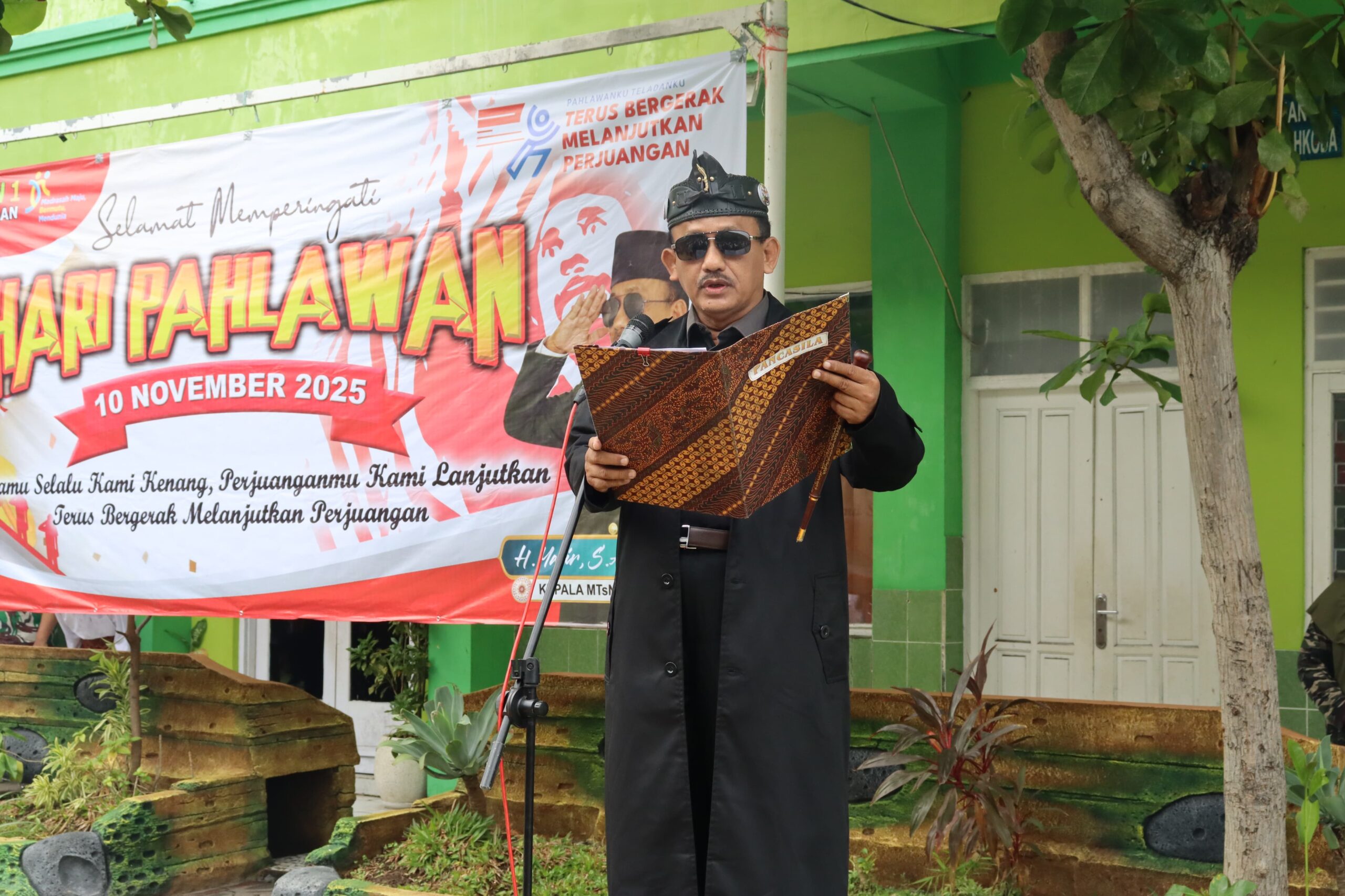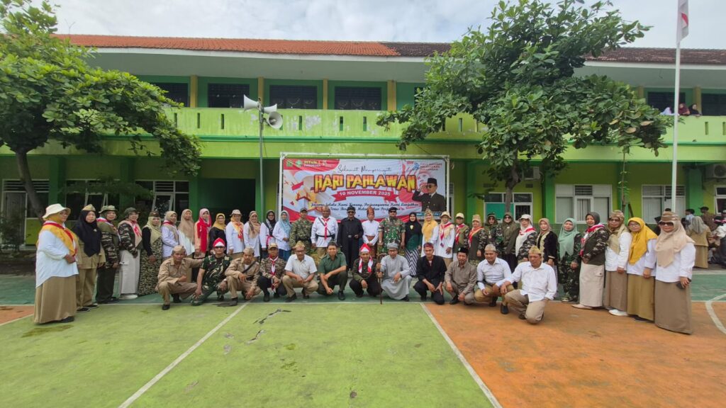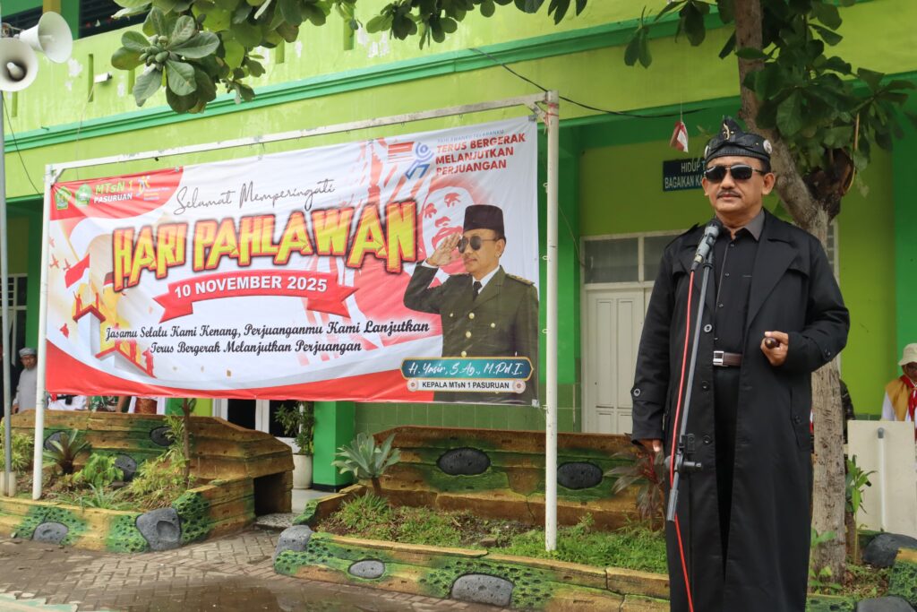 PASURUAN – Suasana peringatan Hari Pahlawan di MTsN 1 Pasuruan terasa berbeda dan lebih berwarna pada Senin (10/11/2025). Tidak seperti upacara bendera biasa, lapangan utama madrasah dipenuhi oleh dewan guru, tenaga kependidikan, dan para siswa yang mengenakan pakaian bernuansa pahlawan, lengkap dengan atribut perjuangan tempo dulu. Dalam balutan khidmat, Kepala Madrasah MTsN 1 Pasuruan, Bapak Yasir, S.Ag., M.Pd., yang bertindak sebagai Pembina Upacara, menyampaikan amanat mendalam tentang tiga nilai fundamental yang diwariskan para pahlawan, yakni kesabaran, keikhlasan, dan visi masa depan.
