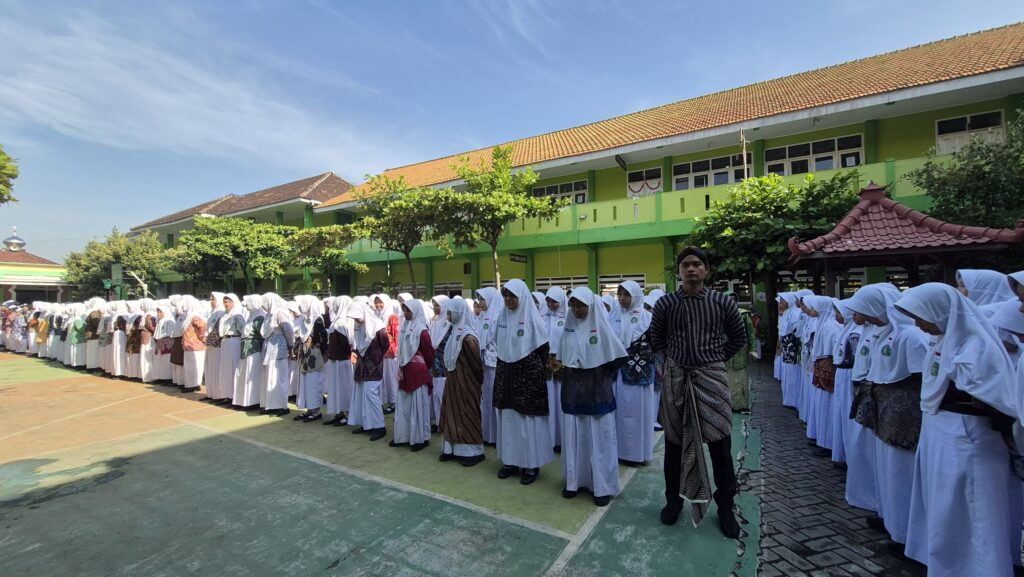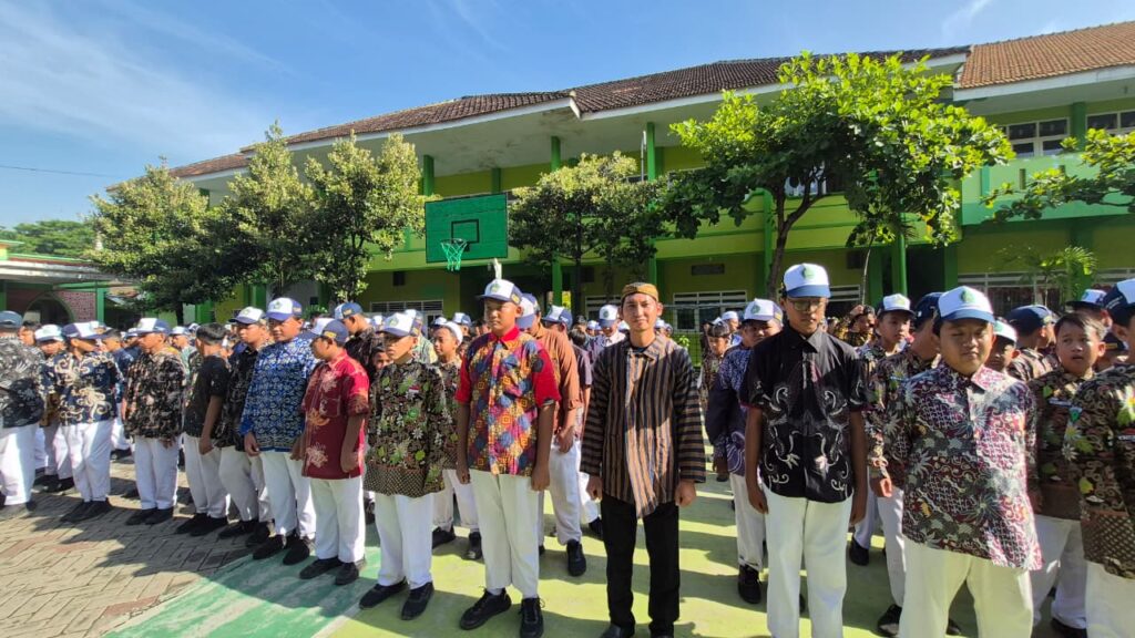 Tak seperti hari biasa, pemandangan di lapangan upacara pagi itu menyajikan nuansa yang unik dan inspiratif. Para guru dan pegawai MTsN 1 Pasuruan tampil memukau dengan mengenakan baju adat nasional dari berbagai daerah, merefleksikan keberagaman Indonesia. Sementara itu, seluruh murid juga tampil rapi dalam balutan batik, menyiratkan penghormatan terhadap kekayaan budaya bangsa.
