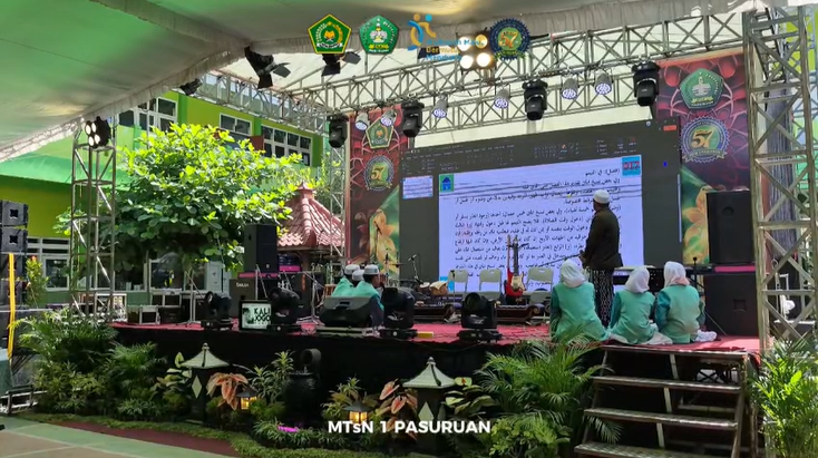 Sebagai penutup, grup musik Kalijogo hadir memeriahkan suasana, menghibur seluruh siswa, guru, dan tamu undangan yang hadir. Seluruh rangkaian acara berjalan dengan lancar dan tertib, mempertegas posisi MTsN 1 Pasuruan sebagai madrasah yang unggul dalam prestasi dan inovasi. Semoga momentum harlah ini menjadi pijakan bagi MTsN 1 Pasuruan untuk terus terbang tinggi, memberikan manfaat bagi masyarakat, dan menjadi kebanggaan Kabupaten Pasuruan di kancah nasional. (Humas)