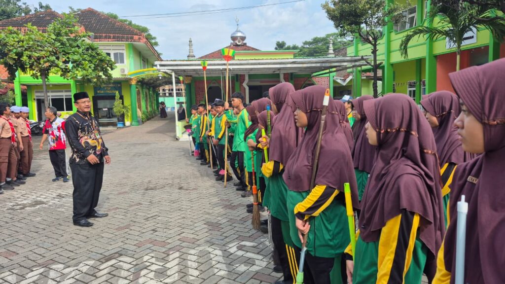 Kepala MTsN 1 Pasuruan, Bapak Yasir, S.Ag., M.Pd. I dalam arahannya menekankan bahwa kegiatan ini bukan sekadar membersihkan fisik bangunan, tetapi juga sebagai simbol pembersihan hati dan penguatan adab sebelum memasuki bulan penuh berkah. Semangat gotong royong ini diharapkan dapat meningkatkan kekhusyukan seluruh warga madrasah dalam melaksanakan program Ramadan, seperti Shalat Dhuha berjamaah dan kajian keagamaan yang rutin digelar di MTsN 1 Pasuruan. (Humas)