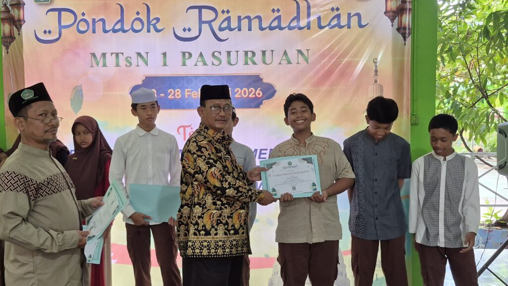 PASURUAN – Suasana penuh khidmat menyelimuti Musholla MTsN 1 Pasuruan pada Sabtu pagi. Seluruh siswa, dewan guru, dan karyawan berkumpul untuk mengikuti acara penutupan kegiatan Pondok Ramadhan yang telah berlangsung selama sepekan terakhir.(28/02/2026)